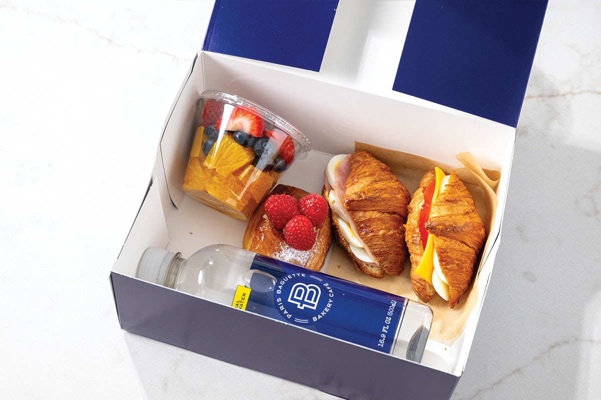 Start your day with a breakfast catering spread that feels like a warm hug. Mini croissant breakfast sandwiches, fresh fruit, and all your favorite breakfast pastries are made and served with love.