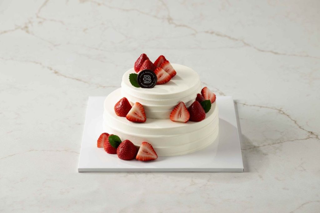 Catering Menu / Specialty Cakes / Strawberry Soft Cream Two Tier CakeStrawberry Soft Cream Two Tier Cake Two tiers of vanilla sponge cake filled with soft cream and fresh strawberries, topped with more berries. Serves 16-22 Contains: Egg, Milk, Soy, Wheat 210 Calories per serving