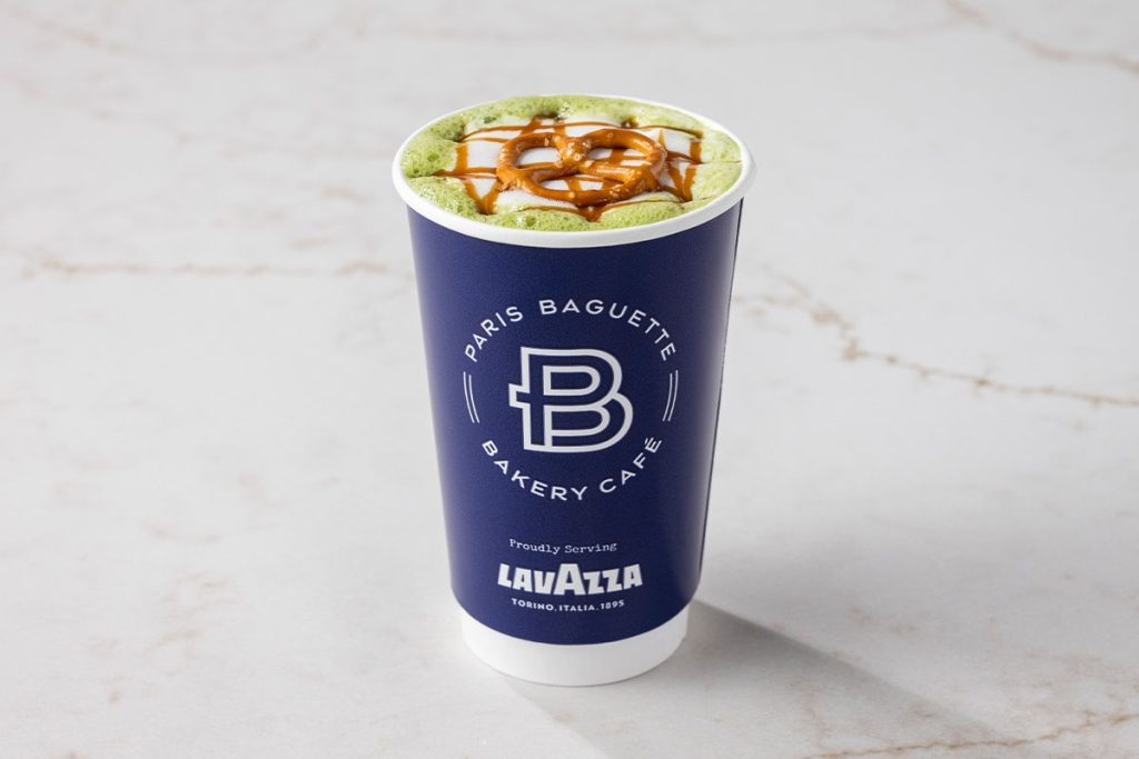 Menu / Hot Beverages / Salted Caramel Pretzel Matcha LatteSalted Caramel Pretzel Matcha Latte Ceremonial grade matcha swirled with salted caramel sauce and steamed milk of choice, drizzled with more caramel and topped with a pretzel. Contains: Milk, Wheat 390 Calories per serving
