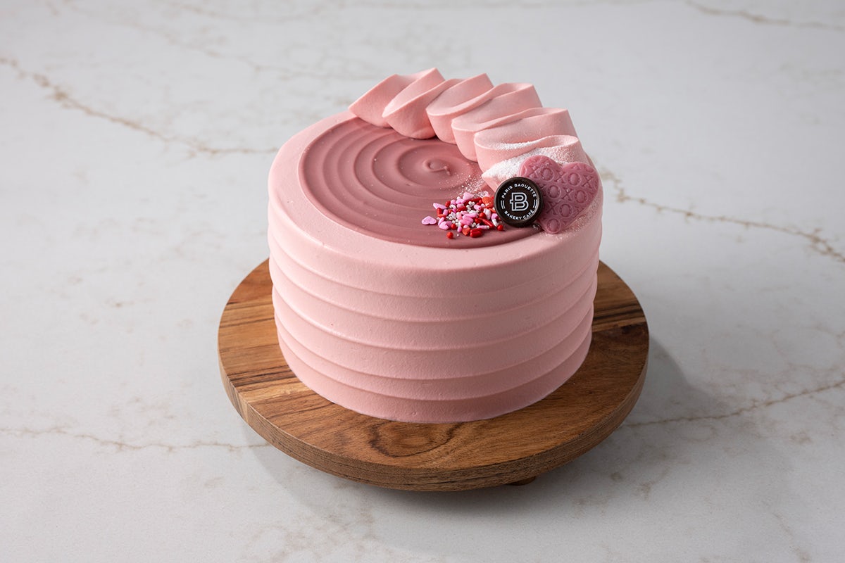Menu / Valentine's Day Cakes: 24-Hour Lead Time / XOXO Strawberry Soft Cream Heart CakeXOXO Strawberry Soft Cream Heart Cake Three layers of heart-shaped vanilla sponge cake filled with strawberry soft cream and fresh strawberries, topped with a heart chocolate. Serves 8 Contains: Egg, Milk, Soy, Wheat 300 Calories per serving